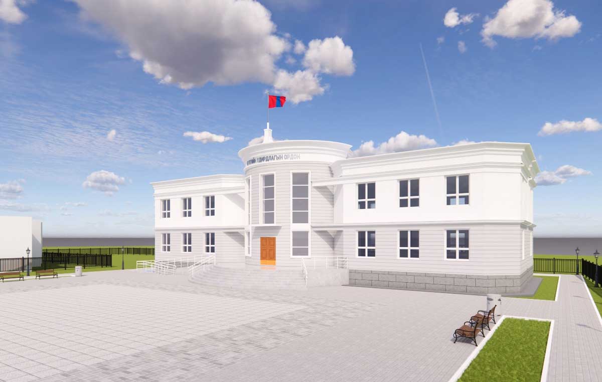 Уг барилга нь зоорьгүй 2 давхар тэнхлэгээрээ 30.0×15.0м ±0.00 түвшингээс 9.92м өндөртэй барилгад Төрийн захиргааны байгууллагад шаардлагатай өрөө тасалгааг төлөвлөв.